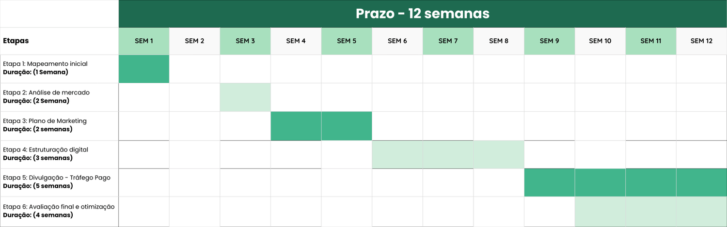 Toda a metodologia é aplicada em apenas 12 semanas, garantindo que os resultados já apareçam no etapa 1 e que tudo esteja concretizado na etapa 6